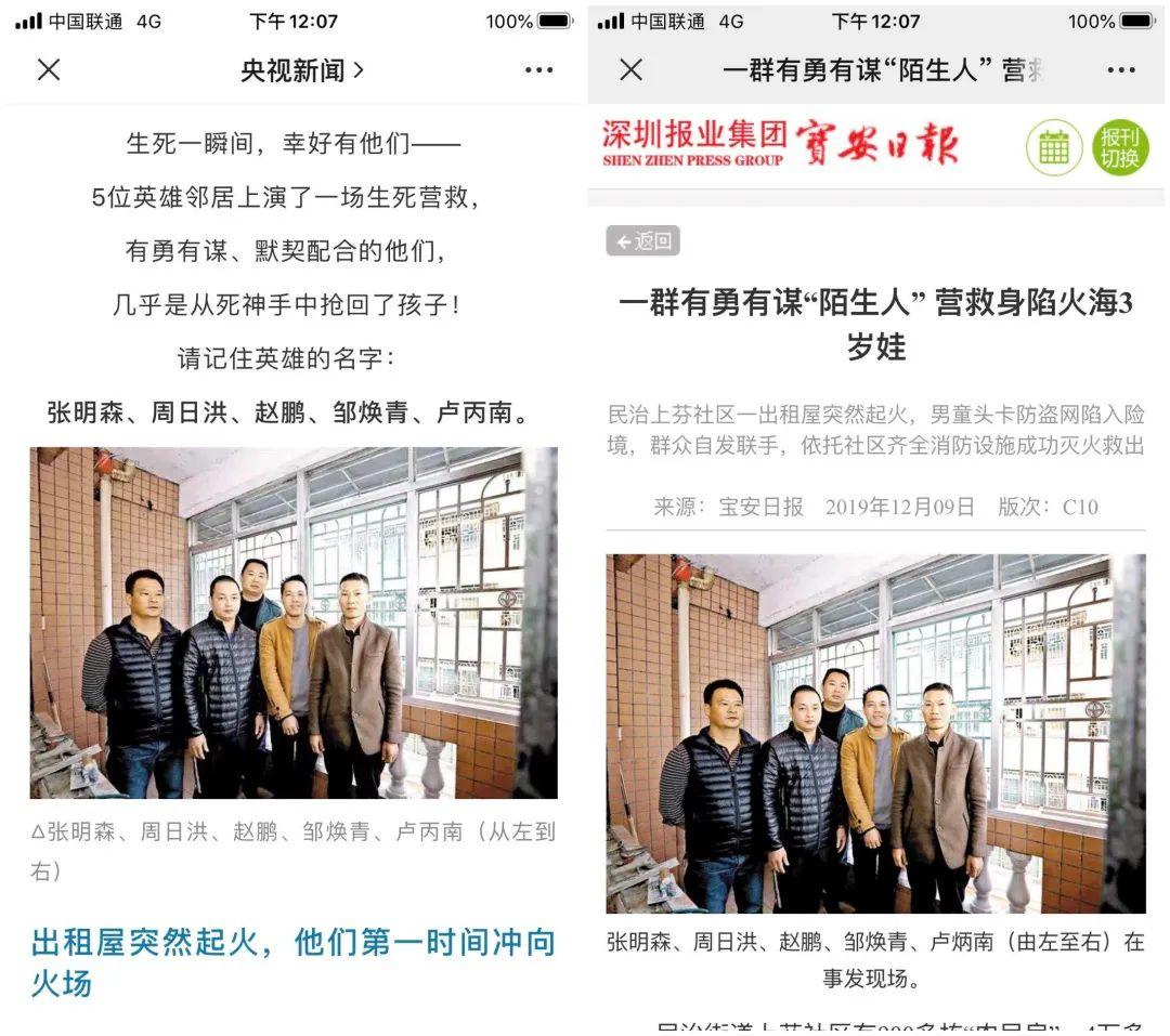 2019年12月3日,龍華區(qū)一處住宅突發(fā)大火,一名3歲幼童懸空在4樓的防盜網(wǎng)進(jìn)退不得。生死一瞬間,幸好有一群有勇有謀的“陌生人”,上演了一場生死營救,合力救被困火場小孩(點(diǎn)擊回顧詳情)。