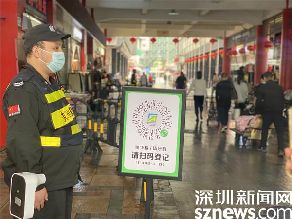在明華廣場幾百米處的東門文化廣場的核酸檢測點,新一輪的核酸檢測正在開展,“請?zhí)崆皰叽a出示粵核酸,戴好口罩,保持間隔排好隊……”志愿者們引導(dǎo)市民有序進(jìn)入檢測。記者了解到,明華樓市場恢復(fù)營業(yè)后,東門商業(yè)街區(qū)管理部門加強(qiáng)常態(tài)化防控,做好各項措施,督促步行街區(qū)商家壓實防疫主體責(zé)任,通過“東門步行街商家自治微信工作群”及電話提醒等方式,要求各商廈嚴(yán)控大型活動、人群聚集,本物業(yè)商鋪店員嚴(yán)格落實戴口罩,對進(jìn)店顧客掃碼、測溫及登記。