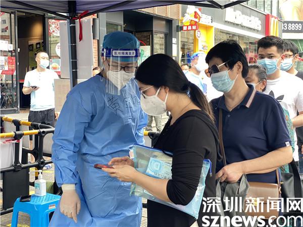 在東門茂業(yè)核酸檢測點(diǎn),雖然附近的商場已暫停營業(yè),往日的熱鬧回歸了平靜,但在旁邊的核酸檢測點(diǎn),志愿者們一遍又一遍不厭其煩地指引大家有序做好核酸檢測。