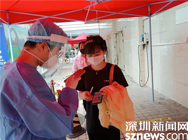楊帆今年22歲,去年7月份大學(xué)畢業(yè)來(lái)到深圳。他說(shuō),一來(lái)深圳,就愛(ài)上了這座年輕的城市,希望自己能在這里開(kāi)花結(jié)果?!艾F(xiàn)在深圳遇到了難處,作為年輕人,我沒(méi)理由不參與這場(chǎng)戰(zhàn)疫?!彼诿碎w小區(qū)配合同事陳大盛,在隊(duì)伍外圍維持秩序,核實(shí)每個(gè)居民的核酸記錄。