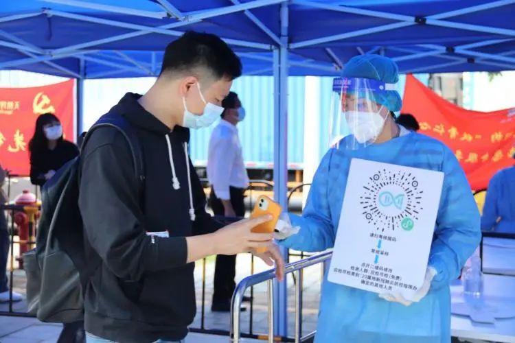 “之前一直在居住的小區(qū)做義工,在核酸檢測點做義工還是第一次,能為居民提供力所能及的服務(wù),我覺得非常有意義?!痹谄荷絼?chuàng)新廣場核酸檢測點,根之然生物科技有限公司創(chuàng)始人、香港青年趙曼弛一絲不茍做好掃碼、測溫工作。