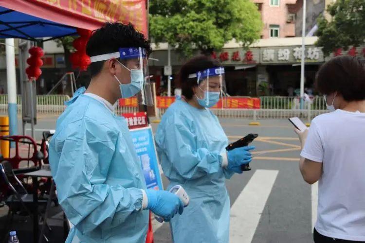 當天下午,坪山區(qū)深港澳青年創(chuàng)新創(chuàng)業(yè)基地義工服務(wù)隊繼續(xù)來到秀新社區(qū)核酸檢測點參加志愿服務(wù)。隨著氣溫升溫,穿著防護服也越來越容易熱,面屏上都是水汽,但是大家依然堅守在各自的崗位上。