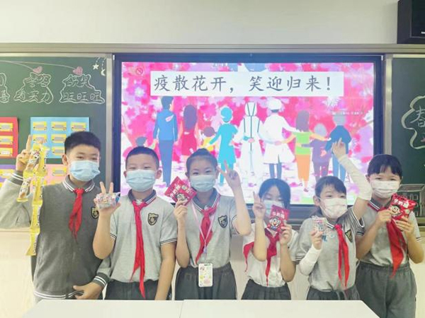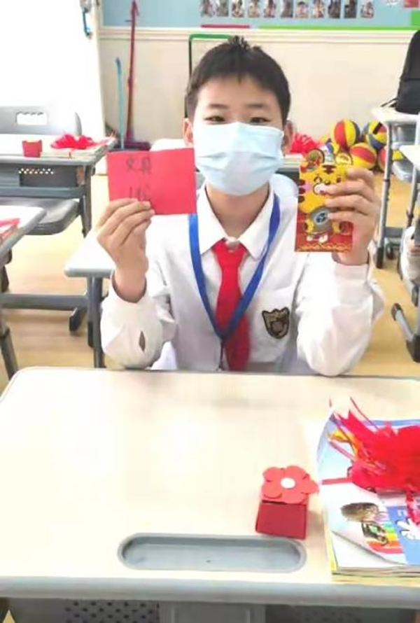502班的返校儀式“愛意濃濃”。紅色拉花讓每個孩子都喜氣洋洋;桌上班主任老師親手折的小禮盒和各式各樣的糖果讓孩子們甜蜜加倍;還有暖心“紅包”,里面有老師們一筆一畫書寫給孩子們的驚喜,更是寄托了無限的關(guān)心與激勵。