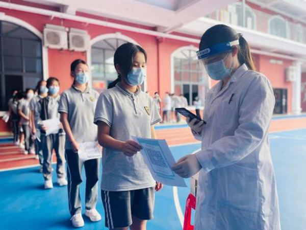 進入闊別已久的校園,興奮和激動的心情溢于言表,提前兩天入校的初三年級學(xué)生做出了表率:用餐隊伍一米距,透明隔斷搭建的用餐區(qū)明亮又溫馨;課間時間在班主任的帶領(lǐng)下,大家排隊測核酸,安靜、有序的隊伍讓“大白”對學(xué)生點贊。少年已歸,向陽而生;不忘初心,逐夢而行。這個夏天,老師帶領(lǐng)著學(xué)生們一邊防疫,一邊學(xué)習(xí),合力同行,一起向未來!