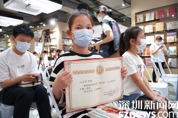 活動(dòng)現(xiàn)場(chǎng)揭曉了大賽的一等獎(jiǎng)、二等獎(jiǎng)、三等獎(jiǎng)、優(yōu)秀獎(jiǎng)作品,以及優(yōu)秀輔導(dǎo)獎(jiǎng)和優(yōu)秀組織獎(jiǎng),共有111位獲獎(jiǎng)?wù)撸ńM織)。為了激勵(lì)孩子們繼續(xù)熱愛閱讀、鼓勵(lì)社會(huì)關(guān)注并支持未成年人閱讀,羅湖區(qū)委宣傳部還特別為獲獎(jiǎng)?wù)邆冞M(jìn)行贈(zèng)書。據(jù)了解,“藍(lán)書封”獲獎(jiǎng)作品展同步在羅湖書城一樓藝展空間進(jìn)行,展期為4月23日-5月23日。
