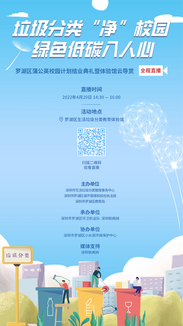 4月29日下午2:30—4:00,羅湖區(qū)首期蒲公英教師培訓(xùn)迎來結(jié)業(yè),羅湖區(qū)垃圾分類體驗(yàn)館館經(jīng)歷多月重整布展后煥新重開,屆時,深圳市生活垃圾分類管理事務(wù)中心、羅湖區(qū)城市管理和綜合執(zhí)法局和羅湖區(qū)教育局共同舉辦垃圾分類“凈”校園綠色低碳入人心——羅湖區(qū)蒲公英校園計劃結(jié)業(yè)典禮暨科普館云導(dǎo)賞活動,深圳新聞網(wǎng)將進(jìn)行全程直播,歡迎各位網(wǎng)友觀看。