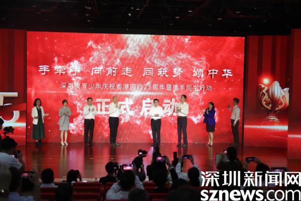 香港教育局局長楊潤雄,澳門教育及青年發(fā)展局副局長黃嘉祺,深圳市委教育工委副書記、市教育局黨組成員楊平分別致辭,充分肯定了攜手同學行動對深港澳文化交流的貢獻,并希望未來三地能有更加深入、密切的聯(lián)系,互惠雙贏,切實增強深港澳青少年的民族自豪感和凝聚力。隨后,領(lǐng)導與港澳青年代表上臺啟動深港澳青少年慶祝香港回歸25周年系列活動。