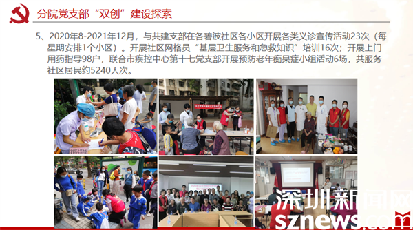 區(qū)中醫(yī)院康復(fù)分院黨支部以黨建引領(lǐng)“雙創(chuàng)”工作取得良好實(shí)效,與黃貝社區(qū)黨委的共建和交叉任職推動(dòng)醫(yī)療資源和社區(qū)服務(wù)的資源共享,把“社區(qū)關(guān)愛(ài)服務(wù)”落到實(shí)處。通過(guò)黨組織聯(lián)動(dòng),增強(qiáng)了居民與醫(yī)護(hù)之間的溝通聯(lián)系,有力推動(dòng)65歲老人體檢和疫苗接種,大大提升居民認(rèn)可度、滿意度??祻?fù)分院黨支部與社區(qū)黨支部和黨員義工合作,為轄區(qū)內(nèi)70歲以上生活不便孤寡老人提供全方位的關(guān)愛(ài)服務(wù),開(kāi)展上門(mén)訪視服務(wù)535人次;深入各小區(qū)開(kāi)展各類義診宣傳、健康知識(shí)推廣活動(dòng)等36場(chǎng),惠及居民5000余人。