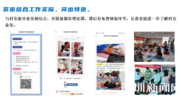 2020年受疫情影響,開(kāi)展線上直播授課,建立孕婦答疑群、產(chǎn)后答疑群、疫情下心理咨詢?nèi)?,引入家庭?xùn)練微信打卡,督促產(chǎn)婦在家堅(jiān)持訓(xùn)練。2021年創(chuàng)新情景劇的形式,把患者日常生活中常見(jiàn)的案例變成小劇本演繹出來(lái),把科普融入直播中。2022年創(chuàng)立“醫(yī)帶一路”,邀請(qǐng)醫(yī)院各個(gè)科室的主任和骨干進(jìn)行線上授課。