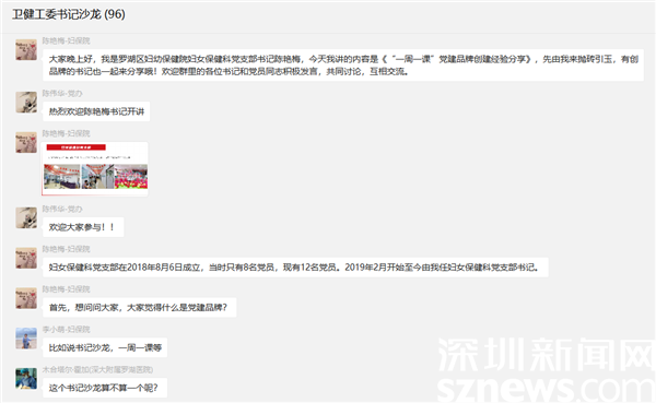 讀特客戶端·深圳新聞網(wǎng)2022年6月20日訊(記者 吳艷 通訊員 韓珊)為落實(shí)基層黨建“標(biāo)準(zhǔn)+質(zhì)量+示范”要求,推動(dòng)黨建業(yè)務(wù)工作深度融合,幫助基層黨組織找準(zhǔn)黨建品牌創(chuàng)建的切入點(diǎn)和實(shí)施路徑,6月16日,羅湖區(qū)委衛(wèi)生健康工委圍繞基層黨建的熱點(diǎn)難點(diǎn)問(wèn)題,舉辦了一場(chǎng)以交流激發(fā)思考的“書(shū)記沙龍”,區(qū)婦保院婦女保健科書(shū)記陳艷梅線上分享黨建品牌創(chuàng)建經(jīng)驗(yàn)和服務(wù)群眾的心得體會(huì),68名支部書(shū)記熱烈探討,共同交流提高。