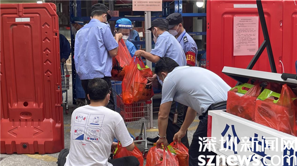 為保障居民生活物資,居民通過(guò)線上商城訂購(gòu)物資,配送的貨品第一站將來(lái)到小區(qū)門口的貨架上,由工作人員統(tǒng)一收取,并用酒精進(jìn)行消殺。隨后,第二站的工作人員將根據(jù)配送詳細(xì)地址,準(zhǔn)確送至每位居民的家門口,盡可能地減少傳播風(fēng)險(xiǎn)和人際接觸。