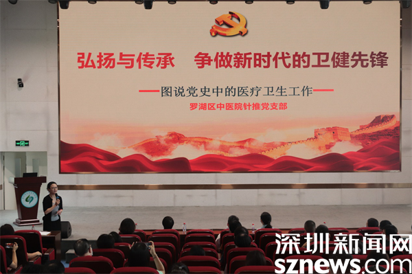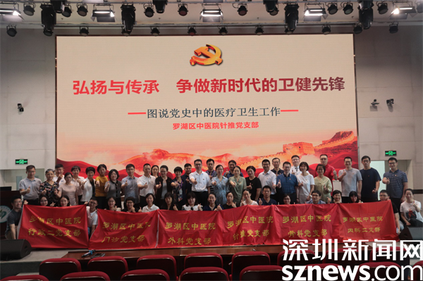 羅湖中醫(yī)院黨委書記林漢群:“針推支部聯(lián)合全院6個支部,在今天這個重要的日子共同為大家展示了一堂精彩的黨課,生動描繪了建黨以來醫(yī)療衛(wèi)生事業(yè)發(fā)展的歷史畫卷,以及不同時期整個衛(wèi)生健康系統(tǒng)的變化,我們這一代人經(jīng)歷了SARS、新冠肺炎,在座每一位同志都自發(fā)地感動、自豪。現(xiàn)在我們處在防控疫情和醫(yī)院發(fā)展的關(guān)鍵時期,全院黨員、群眾齊心協(xié)力,最大限度地發(fā)揮黨支部的戰(zhàn)斗堡壘和黨員的先鋒模范作用,全院上下一心,擰成一股繩,共同書寫羅湖中醫(yī)院發(fā)展的新篇章?!?/p>