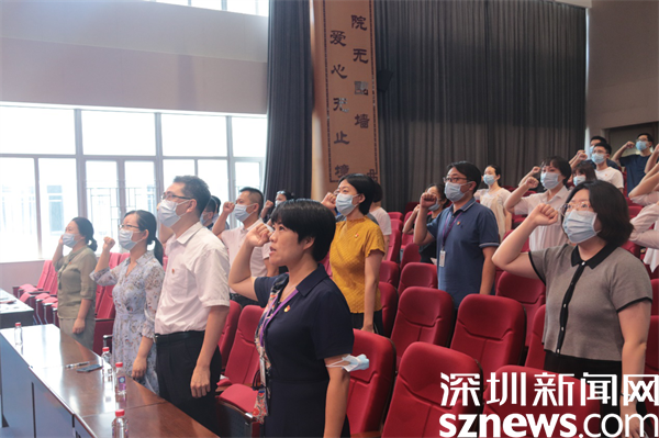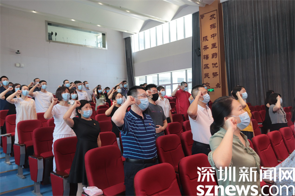 近日,在羅湖區(qū)衛(wèi)生健康工委的統(tǒng)一部署下,區(qū)中醫(yī)院黨委以 “弘揚(yáng)與傳承·爭做新時代的衛(wèi)健先鋒”精品黨課活動為“七一”獻(xiàn)禮,針推支部、骨科支部等6個支部黨員重溫入黨誓詞,在鏗鏘的誓言中,黨員們的初心受到洗禮。