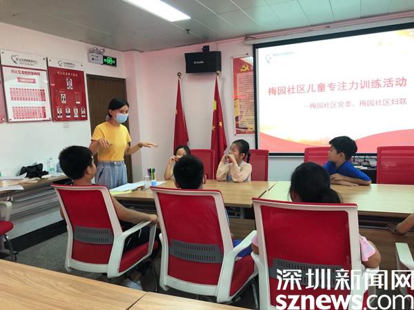 7月22日,深圳市羅湖區(qū)清水河街道梅園社區(qū)黨委、社區(qū)婦聯(lián)聯(lián)合深圳市東西方社工服務(wù)社駐梅園社區(qū)黨群服務(wù)中心的社工在紅崗大廈二樓多功能室,開(kāi)展兒童專(zhuān)注力訓(xùn)練活動(dòng),共吸引36人參與。