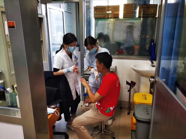 6月1日下午,在深圳市羅湖區(qū)東曉街道大松泉社康中心疫苗接種點,有一群人引起了大家的注意,原來是奔走在大街小巷的外賣小哥。