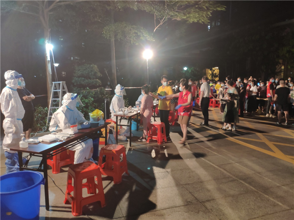 5月26日至29日期間,深圳市羅湖區(qū)蓮塘街道坳下社區(qū)在社區(qū)文化廣場設立了臨時核酸檢測點,醫(yī)護人員、街道下沉干部、社區(qū)工作人員、股份公司民兵及黨員群眾日夜兼程,加班加點,確保核酸檢測工作有序高效開展。