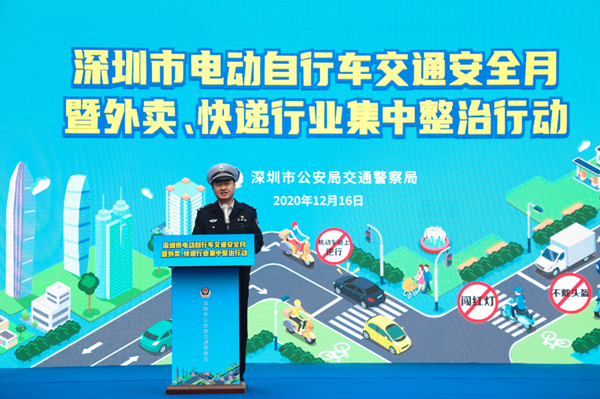 12月16日下午,深圳交警在羅湖區(qū)東門文化廣場舉行深圳市電動自行車交通安全月暨外賣、快遞行業(yè)集中整治行動啟動儀式。