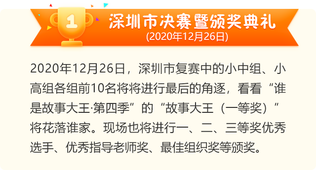 讓閱讀成為動(dòng)人的風(fēng)景,讓故事的魅力感動(dòng)深圳。為助力建設(shè)良好的青少年閱讀環(huán)境,激發(fā)學(xué)生閱讀興趣,倡導(dǎo)親子閱讀,共建和諧家庭關(guān)系。2020年,第二十一屆深圳讀書月主題活動(dòng)“誰是故事大王·第四季”在共青團(tuán)深圳市委員會(huì)、深圳市關(guān)愛行動(dòng)組委會(huì)辦公室的指導(dǎo)下再出發(fā)。更長的活動(dòng)周期,更豐富的參與形式,更專業(yè)的賽制,“誰是故事大王·第四季”等你來解鎖與挑戰(zhàn)!