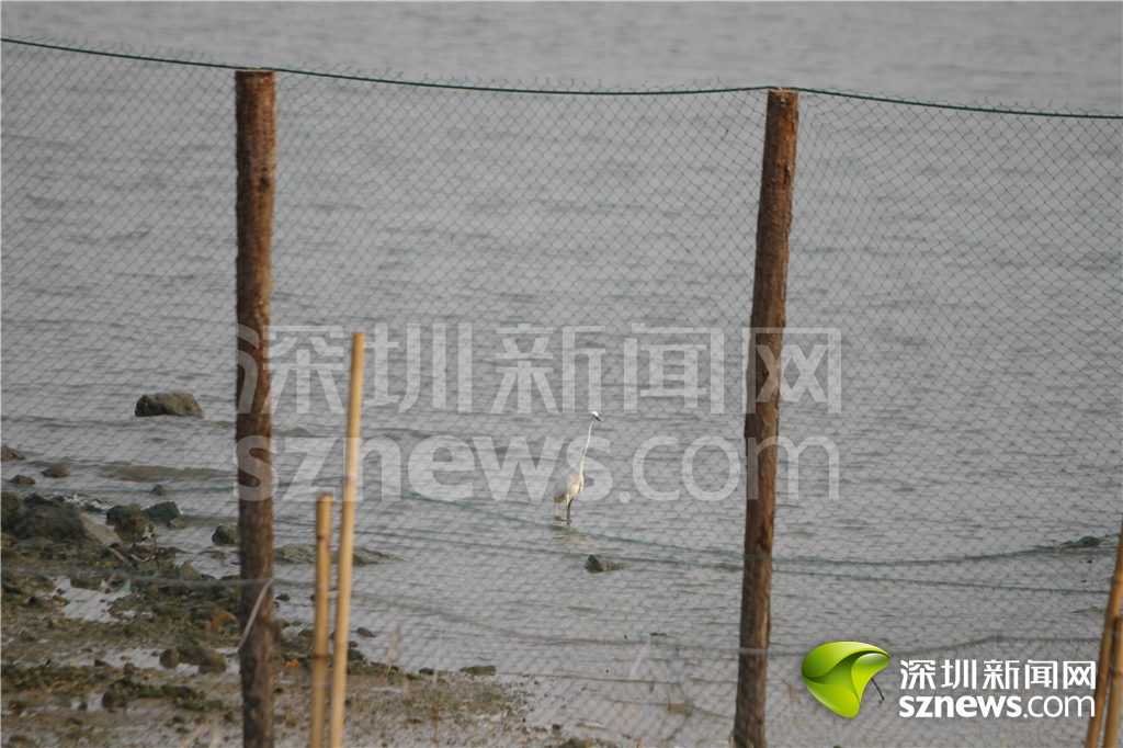 4月18日下午,記者來(lái)到深圳灣公園,發(fā)現(xiàn)網(wǎng)友所說(shuō)的圍網(wǎng)區(qū)域位于廣東內(nèi)伶仃島福田國(guó)家級(jí)自然保護(hù)區(qū)內(nèi)。在現(xiàn)場(chǎng)記者沒(méi)有發(fā)現(xiàn)有海鳥受傷死亡的尸體,但是沿著海岸線,大量的圍網(wǎng)確實(shí)存在,圍網(wǎng)用藍(lán)色的尼龍繩制成,韌性很強(qiáng),耐腐蝕。這些隔離網(wǎng)安裝在水陸交接的地方,用木樁固定,高度大概在1米左右,綿延在海岸線上,有的甚至一眼看不到盡頭。而對(duì)于這些網(wǎng)的用途,現(xiàn)場(chǎng)并沒(méi)有相關(guān)的提示和公告。