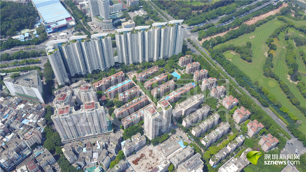 從高空看去,白石洲被高層建筑包圍,高矮對(duì)比鮮明
