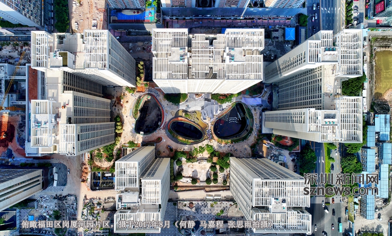 告別“握手樓”、“一線天”、臟亂差,崗廈河園片區(qū)改造后,建筑錯落有致,建成后將成為深圳最具標志性的城市綜合體之一。