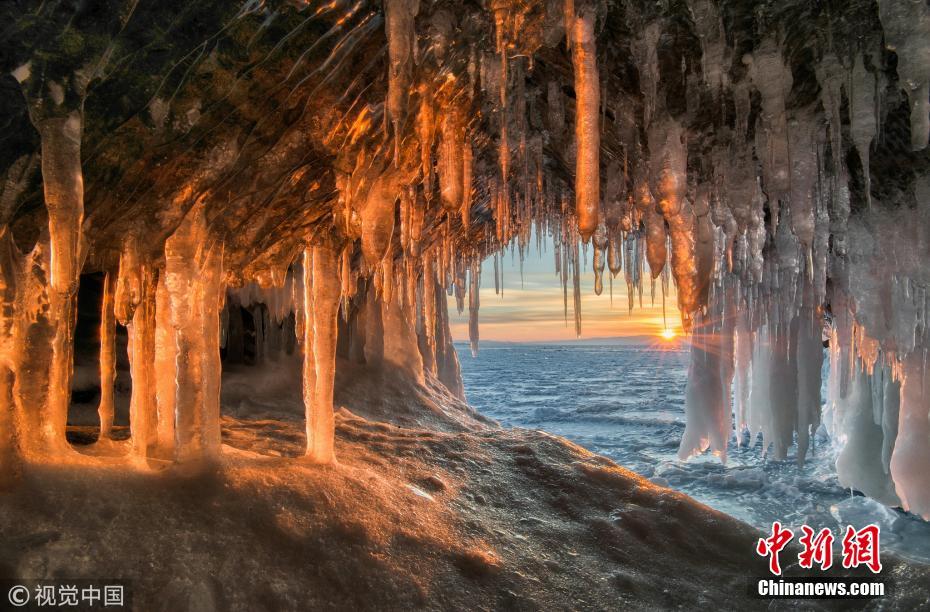 俄羅斯西伯利亞貝加爾湖,冰洞里成千上萬(wàn)的冰錐營(yíng)造了一種超現(xiàn)實(shí)的美景。39歲的攝影師安德烈(Andrey Grachev)在世界上最深的湖泊旁發(fā)現(xiàn)了這些洞穴。這些冰錐就像倒置的哥特式建筑的尖頂,有的甚至有10英尺(約3米)長(zhǎng)。安德烈來(lái)自莫斯科,他說(shuō)這一景觀是暴風(fēng)雨造成的,大量的水滲入洞內(nèi)后在低溫中被立刻凍住。圖片來(lái)源:視覺(jué)中國(guó)