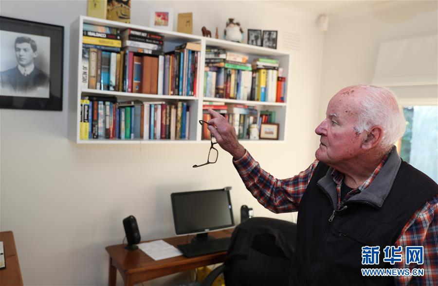 在澳大利亞最古老的唐人街——墨爾本唐人街深處,隱藏著一棟五層紅磚小樓,澳華歷史博物館就坐落在這里。1818年,來自廣東的麥世英在杰克遜港下船,成為有記載的最早一批來澳華人移民中的一員。19世紀50年代,伴隨著淘金熱,不少華工出現(xiàn)在澳大利亞的金礦里。現(xiàn)在,澳大利亞的華裔人口已超過100萬,中文僅次于英文成為澳大利亞使用人數(shù)第二多的語言。圖為巴里·世英在家中回憶自己的父親馬丁·世英(2018年6月22日攝)。居住在墨爾本郊外20多公里的布萊克羅克小鎮(zhèn)上的八旬老人巴里·世英就是麥世英的后人。新華社記者白雪飛攝
