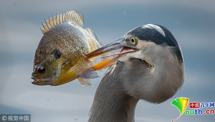 當(dāng)?shù)貢r(shí)間2018年1月29日,美國(guó)田納西州納什維爾的拉德諾湖州立公園,一只大藍(lán)鷺刺穿了一條“巨大的”藍(lán)鰓魚(yú),一口氣把它吞下。