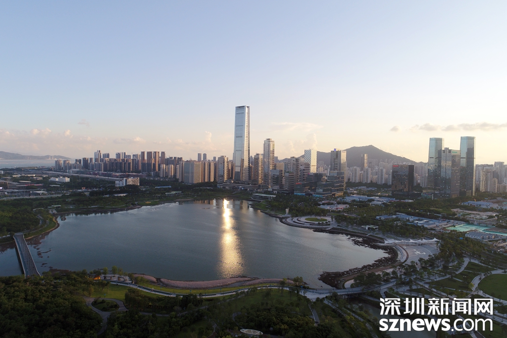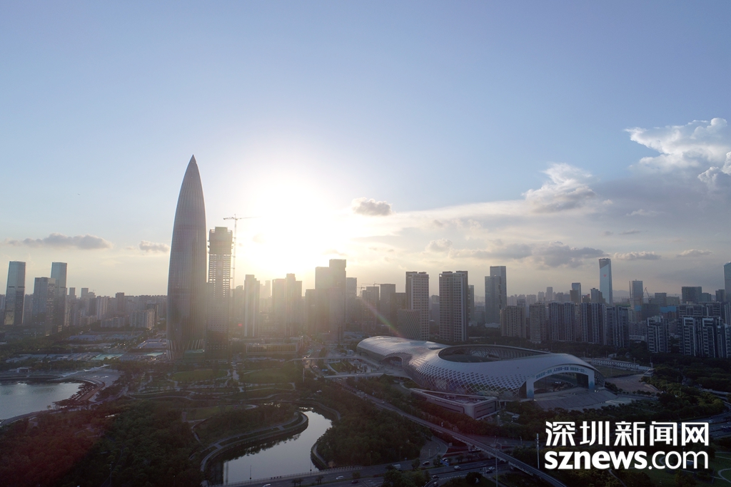夕陽為深圳灣體育館和華潤(rùn)大廈打上柔美的輪廓光