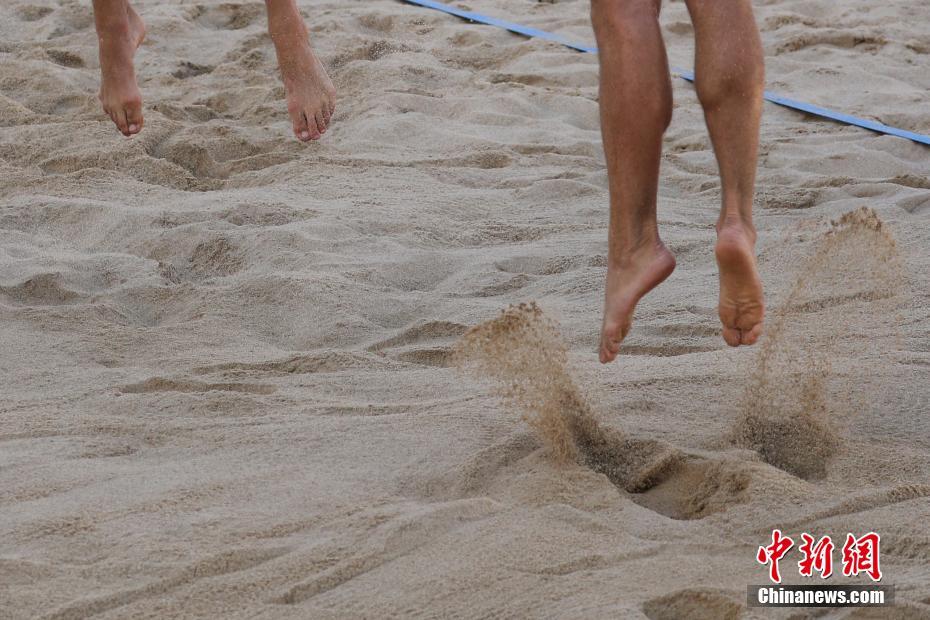7月11日,在南京舉行的2018國際排聯(lián)沙灘排球U19世界錦標(biāo)賽進(jìn)入第二天的賽程,中外運(yùn)動員輪番上場,捉對“廝殺”,一決高下。中新社記者泱波 攝