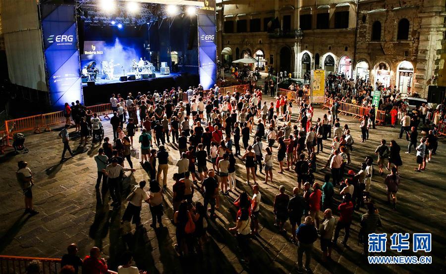 7月13日,在意大利佩魯賈,觀眾在翁布里亞爵士音樂節(jié)上觀看樂手演出。翁布里亞爵士音樂節(jié)于7月13日在翁布里亞大區(qū)山城佩魯賈開幕,將持續(xù)至22日。今年是該音樂節(jié)舉辦的第45周年。期間,中部山地古城的酒吧餐廳、青石板路和大小劇院都成為樂手的舞臺(tái)和觀眾欣賞音樂的福地。新華社記者金宇攝