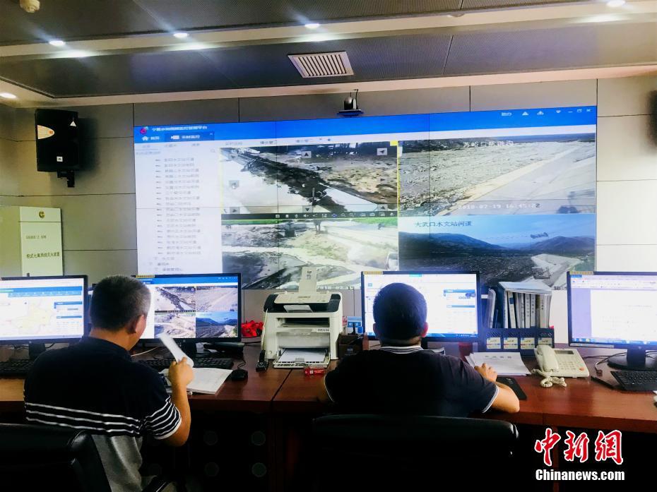 7月19日,寧夏水利廳防汛抗旱指揮調度系統(tǒng),工作人員監(jiān)控汛情變化。據(jù)了解,近日,甘肅、陜西等黃河流域普降大到暴雨,12日12時,黃河1號洪峰進入寧夏,入境流量達到每秒2100立方米,繼2012年以來,黃河寧夏段首次發(fā)布IV級預警。中新社記者額麗其格 攝