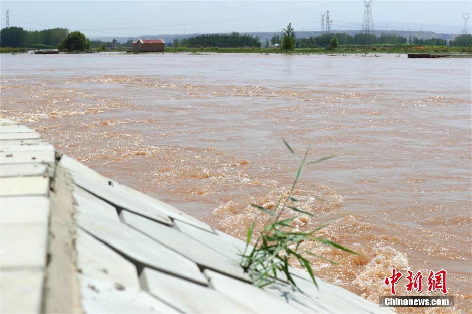 7月19日,黃河寧夏中衛(wèi)段入境流量為每秒2040立方米,可見遠處因水位上漲被淹沒的河灘,隱約能看到稻谷麥穗。據(jù)了解,近日,甘肅、陜西等黃河流域普降大到暴雨,12日12時,黃河1號洪峰進入寧夏,入境流量達到每秒2100立方米,繼2012年以來,黃河寧夏段首次發(fā)布IV級預警。中新社記者額麗其格 攝