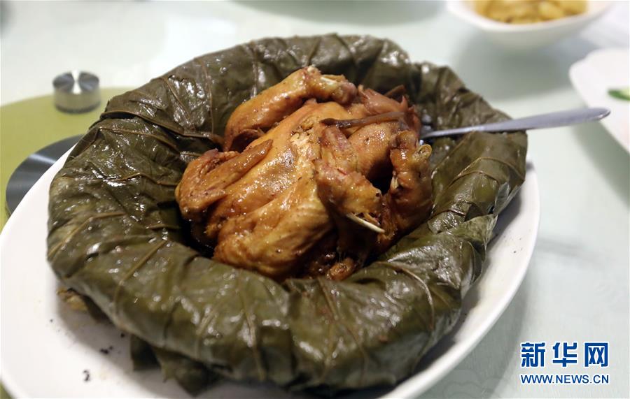 這是在香港灣仔杭州酒家拍攝的“叫化雞”(6月16日攝)。 金庸在武俠小說《神雕俠侶》中借郭靖之口說過: “為國為民,俠之大者。”武俠精神在香港備受推崇,有其心向中華文化的情感基礎(chǔ)。在這個國際美食之都,品味舌尖上的武俠味,內(nèi)中的感覺別有深意。新華社記者 李鵬 攝