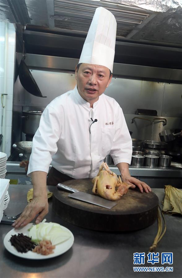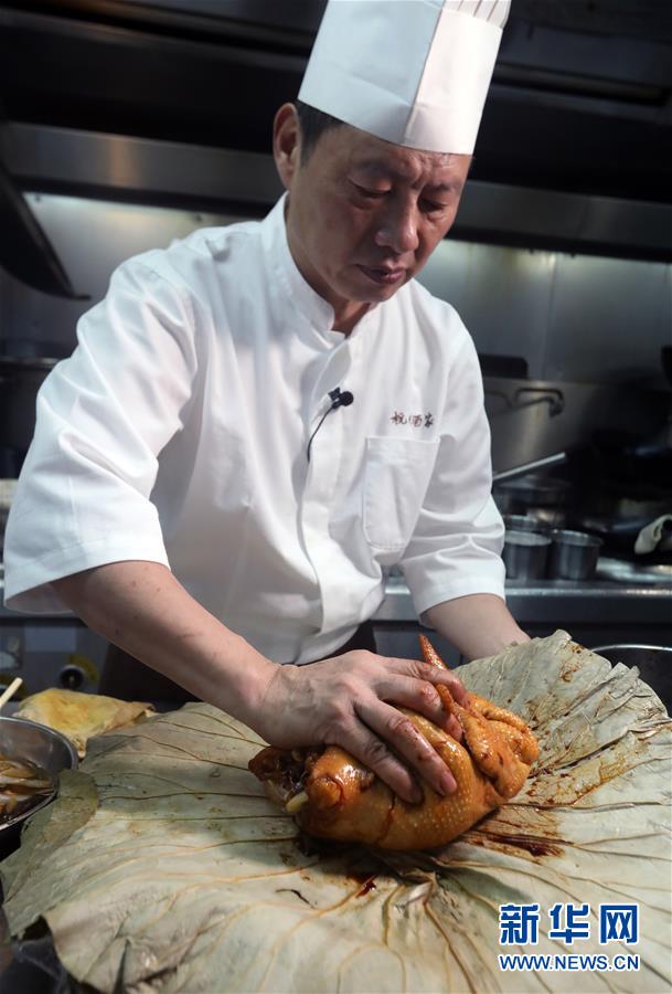 杭州酒家老板吳瑞康現(xiàn)場制作本店招牌菜“叫化雞”(6月16日攝)。 金庸在武俠小說《神雕俠侶》中借郭靖之口說過: “為國為民,俠之大者?!蔽鋫b精神在香港備受推崇,有其心向中華文化的情感基礎(chǔ)。在這個國際美食之都,品味舌尖上的武俠味,內(nèi)中的感覺別有深意。新華社記者 李鵬 攝