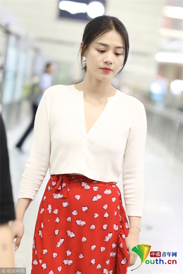 2018年7月31日,“水月”馬思純從北京飛往上海現(xiàn)身機(jī)場,她身穿草莓圖案大紅裙,手提櫻桃小竹籃,造型清新甜美,搭配深V白襯衫,美胸若隱若現(xiàn),平添小性感。