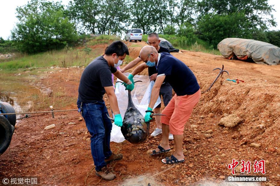 當(dāng)日16時許,中科院武漢水生所專家趕到現(xiàn)場,經(jīng)解開江豚身上的絲網(wǎng)發(fā)現(xiàn),這頭雄性成年江豚身體無明顯外傷,體重約35公斤,體長1.38米。該水生所段姓研究員判斷,該頭江豚應(yīng)該是被絲網(wǎng)纏住身體后無法掙脫,不能躍出水面呼吸最后導(dǎo)致溺亡,非??上?。當(dāng)天下午,水生所專家將這頭死亡江豚帶回解剖并制作標(biāo)本。洪永林 攝 圖片來源:視覺中國 文字來源:九江新聞網(wǎng)