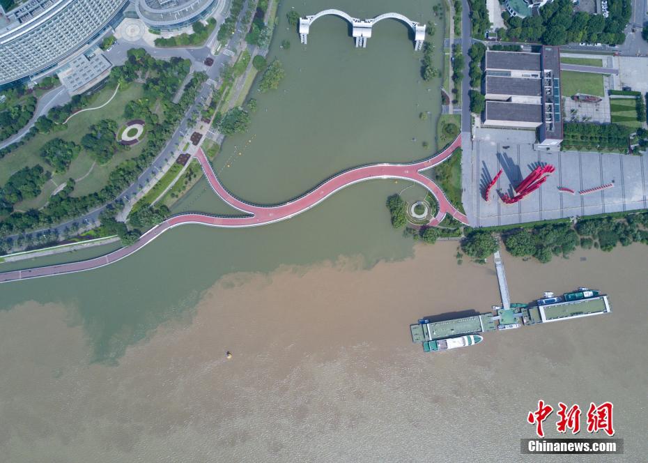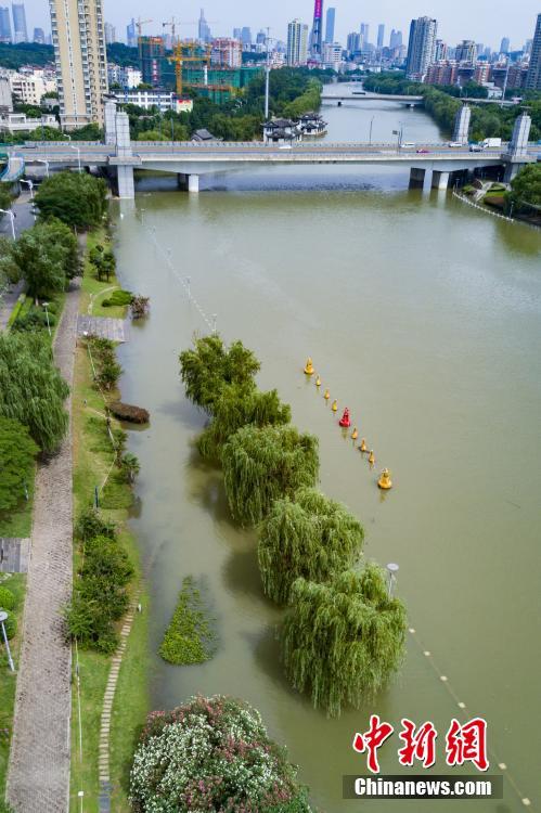 7月10日,航拍長(zhǎng)江與南京秦淮河交匯處,樹(shù)木淹入水中。當(dāng)日,江蘇水利廳發(fā)布的水情信息顯示,長(zhǎng)江南京段水位已降至警戒線以下。中新社記者泱波 攝