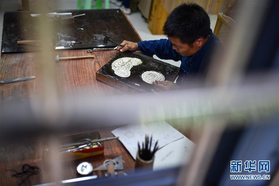 龍懂陽的弟弟龍?zhí)栆彩倾y飾工藝傳人。和哥哥不同,弟弟主打的是銀飾文化體驗(yàn)游,用自家傳統(tǒng)苗寨開設(shè)民宿,游客在此居住的同時,還能學(xué)習(xí)體驗(yàn)銀飾品制作。每年暑期一到,家長孩子絡(luò)繹不絕。新客源、新銷路、新模式帶動雷山縣銀飾業(yè)不斷發(fā)展壯大,成為脫貧攻堅的重要產(chǎn)業(yè)。2017年,雷山縣控拜、麻料、烏高三個村銀飾品及相關(guān)產(chǎn)業(yè)銷售額超過1.5億元,吸引很多外出打工的年輕人回家創(chuàng)業(yè)。苗寨鍛銀聲在綠水青山間響遍千戶,也漸漸走出大山,聲名遠(yuǎn)播。新華社記者 李芒茫 攝