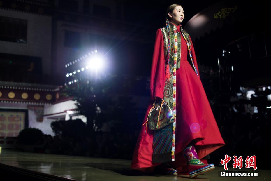 8月12日晚,由西藏職業(yè)技術(shù)學(xué)院與北京服裝學(xué)院共同打造的“凈美雪頓·美好生活”西藏民族服裝與服飾展演活動在拉薩舉行?,F(xiàn)場通過傳統(tǒng)篇、現(xiàn)代篇與未來篇三個篇章,展演了藏族傳統(tǒng)服裝26套,設(shè)計創(chuàng)新服裝58套,共計84套服裝。圖為模特展示藏族傳統(tǒng)服飾。中新社記者何蓬磊 攝