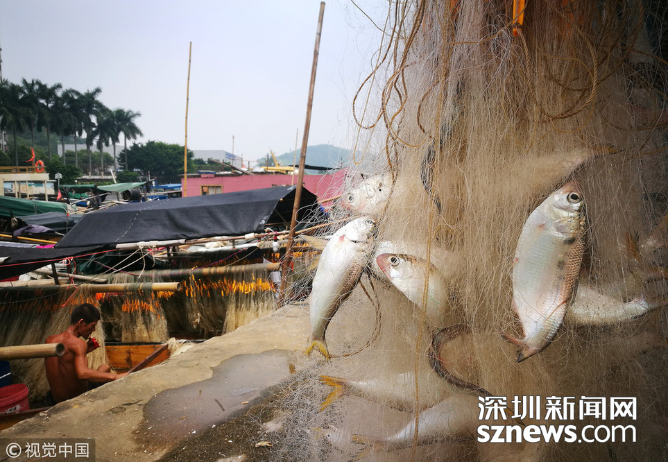實(shí)拍開(kāi)漁后東莞新灣漁民忙碌后的收獲