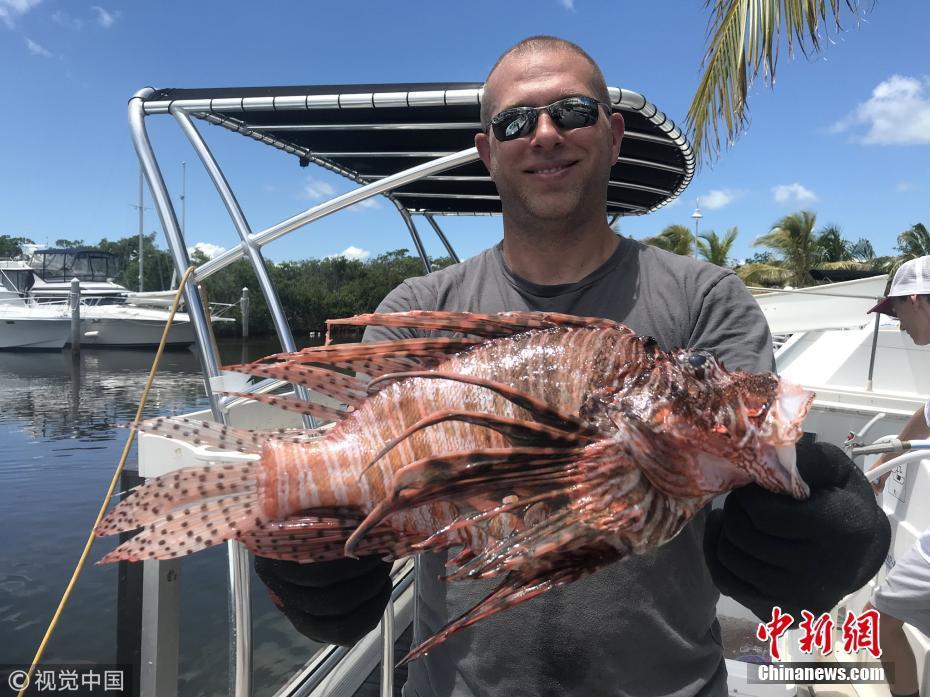8月21日訊(具體拍攝時(shí)間不詳),近日,來(lái)自長(zhǎng)島的Timothy Blasko打破了記錄,他捕獲了大西洋最重的獅子魚。37歲的Timothy Blasko是一名技術(shù)精湛的捕魚者,當(dāng)天,他和朋友們?cè)诜鹆_里達(dá)群島伊斯拉莫拉達(dá)海岸捕魚時(shí),遇到了這條大魚。Timothy向朋友要來(lái)了魚叉,瞄準(zhǔn)大魚的下方位置叉去,正中目標(biāo)成功捕獲。當(dāng)他們把這條魚和當(dāng)天捕獲的其它魚排在一起時(shí),他們猜測(cè)這條魚可能會(huì)破紀(jì)錄?!八?jiǎn)直是獅子魚中的哥斯拉!” Timothy描述道,“這條巨大的獅子魚重達(dá)3.1磅,刷新了大西洋迄今最重獅子魚的國(guó)家紀(jì)錄。”圖片來(lái)源:視覺中國(guó)