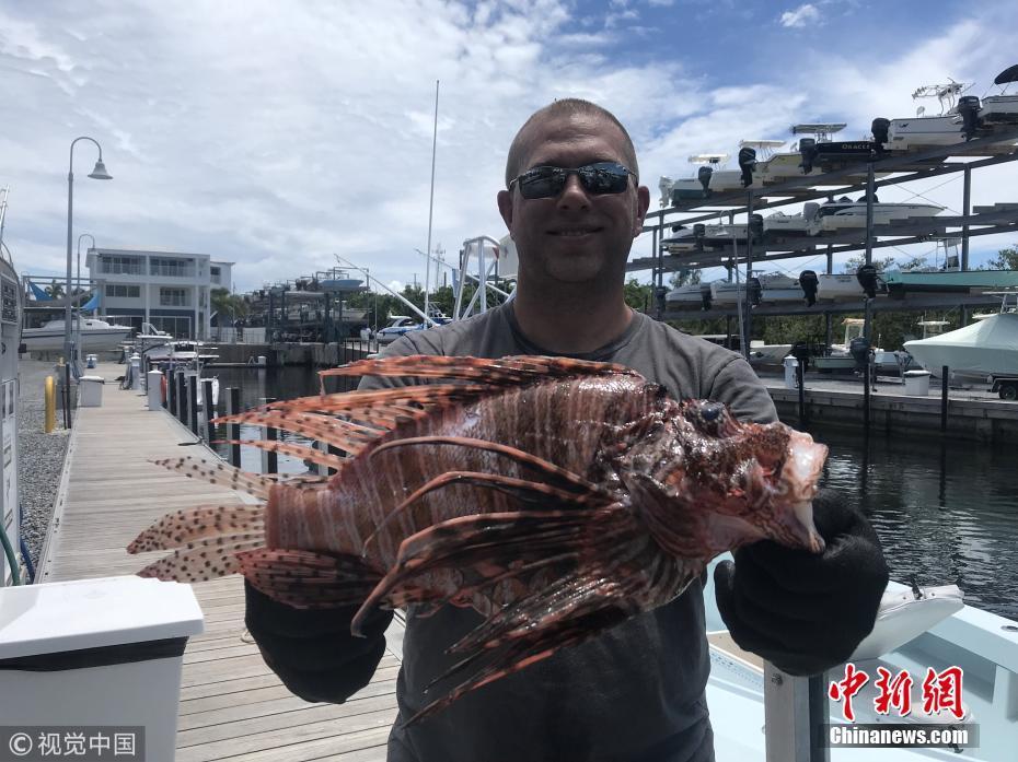 8月21日訊(具體拍攝時間不詳),近日,來自長島的Timothy Blasko打破了記錄,他捕獲了大西洋最重的獅子魚。37歲的Timothy Blasko是一名技術(shù)精湛的捕魚者,當(dāng)天,他和朋友們在佛羅里達群島伊斯拉莫拉達海岸捕魚時,遇到了這條大魚。Timothy向朋友要來了魚叉,瞄準大魚的下方位置叉去,正中目標成功捕獲。當(dāng)他們把這條魚和當(dāng)天捕獲的其它魚排在一起時,他們猜測這條魚可能會破紀錄?!八喼笔仟{子魚中的哥斯拉!” Timothy描述道,“這條巨大的獅子魚重達3.1磅,刷新了大西洋迄今最重獅子魚的國家紀錄?!眻D片來源:視覺中國