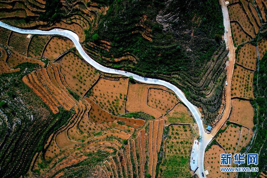 這是5月6日無人機(jī)拍攝的涉縣關(guān)防鄉(xiāng)后池村梯田和公路。初夏時節(jié),河北省邯鄲市涉縣山間的梯田綠意盎然,猶如一幅幅美麗畫卷。新華社記者 王曉 攝