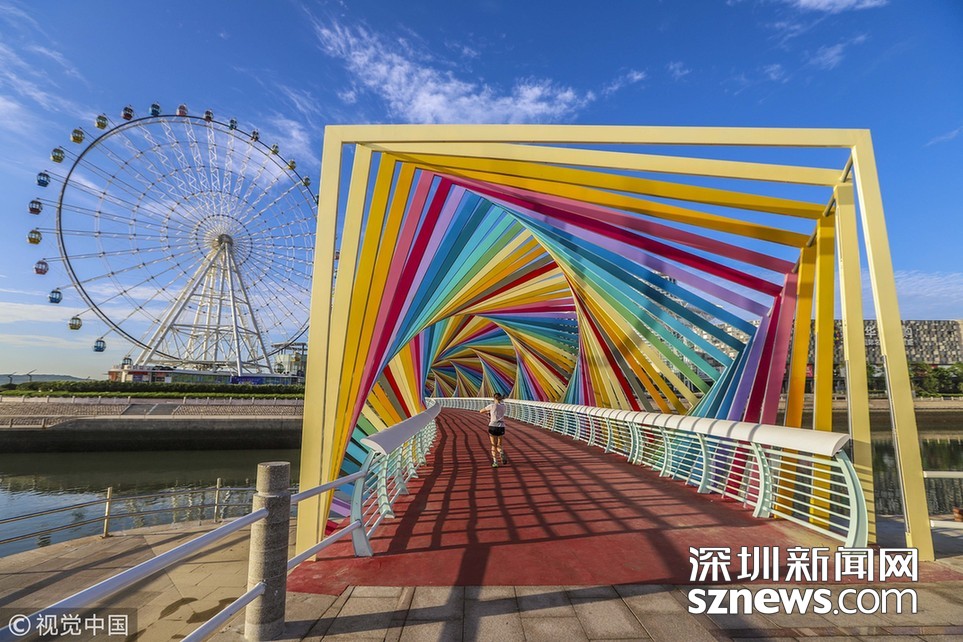 2018年9月5日早晨,青島西海岸新區(qū)為唐島灣公園量身定制的“七彩橋”驚艷亮相。色彩斑斕,造型別致宛如童話世界。