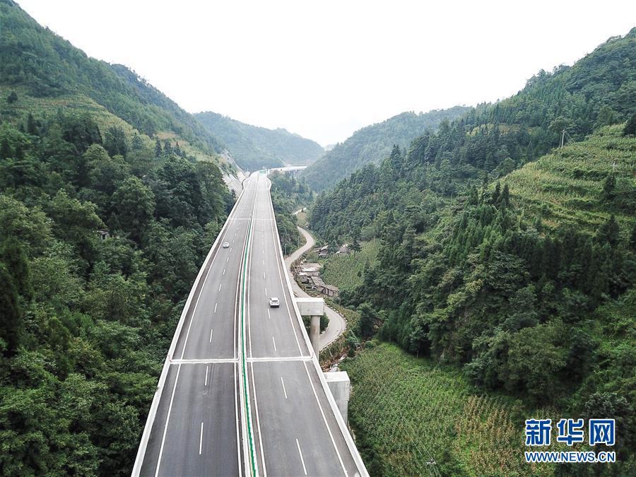 這是貴州織普高速織金東至普定路段(8月31日無人機拍攝)。 新華社記者 陶亮 攝