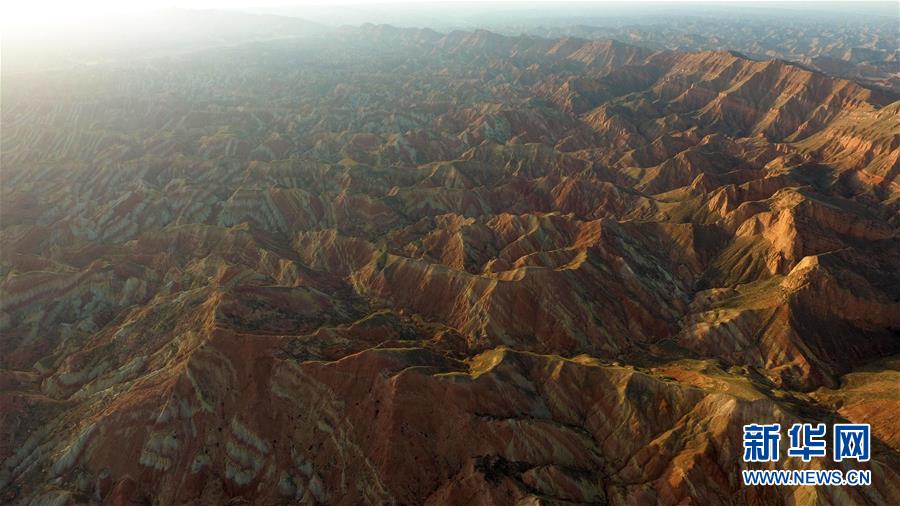 這是7月15日拍攝的蘭州樹屏丹霞地貌。蘭州樹屏丹霞國家地質(zhì)公園位于甘肅省蘭州市永登縣咸水河流域及其毗鄰地區(qū),分布在蘭州市所屬的永登縣、皋蘭縣、西固區(qū)、安寧區(qū),主體位于永登縣樹屏鎮(zhèn)、苦水鎮(zhèn)和西固區(qū)河口鎮(zhèn)。其主體地質(zhì)遺跡為丹霞和彩色丘陵,登高遠眺,綿延起伏,絢爛瑰麗,如同大自然創(chuàng)作的壯美油畫。新華社記者陳曄華 攝