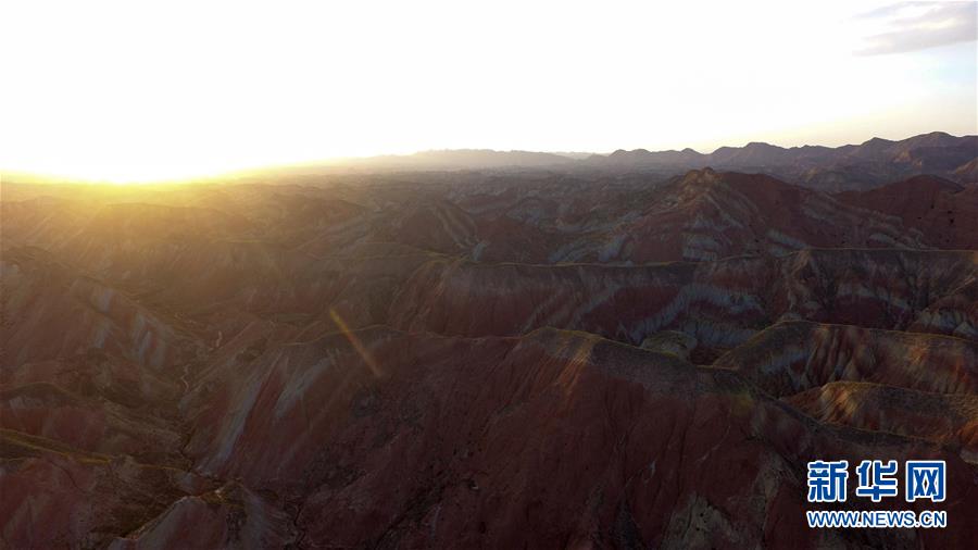 這是7月15日拍攝的夕陽下的蘭州樹屏丹霞地貌。蘭州樹屏丹霞國家地質公園位于甘肅省蘭州市永登縣咸水河流域及其毗鄰地區(qū),分布在蘭州市所屬的永登縣、皋蘭縣、西固區(qū)、安寧區(qū),主體位于永登縣樹屏鎮(zhèn)、苦水鎮(zhèn)和西固區(qū)河口鎮(zhèn)。其主體地質遺跡為丹霞和彩色丘陵,登高遠眺,綿延起伏,絢爛瑰麗,如同大自然創(chuàng)作的壯美油畫。新華社記者陳曄華 攝