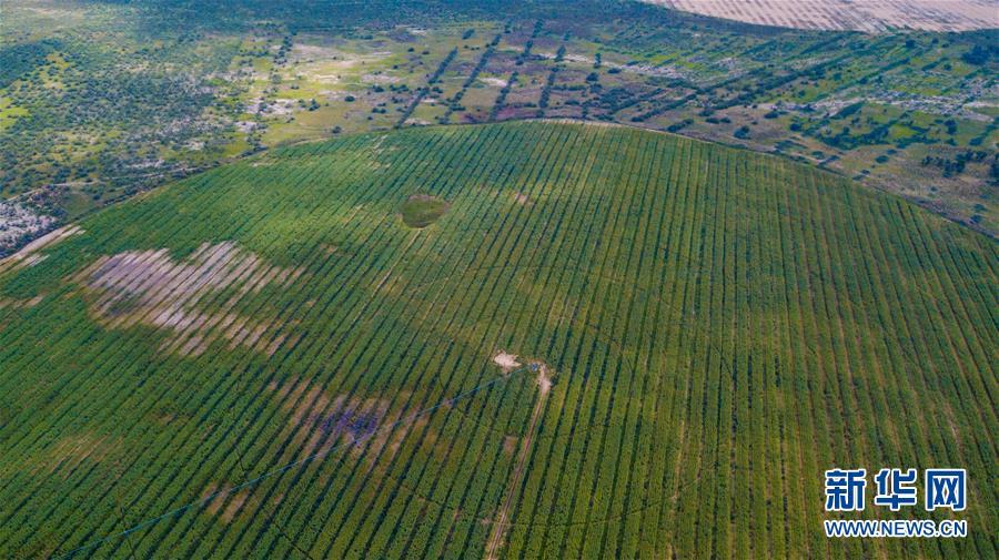 內(nèi)蒙古達(dá)拉特旗白土梁林場的沙棘林(8月1日無人機(jī)拍攝)。 新華社記者張善臣攝