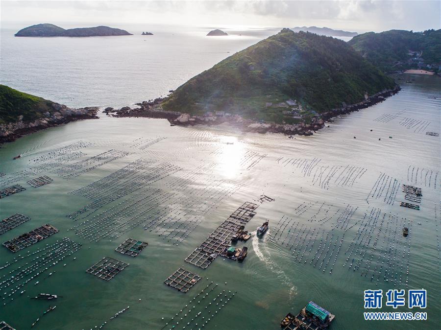 8月19日,空中俯瞰南麂島海域內(nèi)的“海上牧場”養(yǎng)殖區(qū)(無人機拍攝)。進入8月,浙江省溫州市平陽縣南麂鎮(zhèn)海域上大片的大黃魚、貽貝等特色海產(chǎn)品養(yǎng)殖區(qū)域迎來豐收季節(jié),養(yǎng)殖戶們駕駛漁船在養(yǎng)殖區(qū)海域進行打撈收獲,在碧海藍天下構(gòu)成了一幅“海上牧場”的美麗豐收景象。近年來,南麂鎮(zhèn)政府引導(dǎo)漁民養(yǎng)殖戶充分發(fā)揮“靠海吃?!钡馁Y源優(yōu)勢,大力發(fā)展海洋養(yǎng)殖經(jīng)濟和海島旅游經(jīng)濟,實現(xiàn)了南麂由“生態(tài)美”向“產(chǎn)業(yè)美”,“產(chǎn)業(yè)美”向“經(jīng)濟美”的轉(zhuǎn)變。同時該鎮(zhèn)堅持以大黃魚、貽貝等為特色產(chǎn)業(yè)支撐,精準(zhǔn)發(fā)展高效海洋養(yǎng)殖業(yè),重點培養(yǎng)一批新型職業(yè)漁民,依靠專業(yè)技術(shù)支持,實現(xiàn)深海仿生養(yǎng)殖,讓好生態(tài)造就好品質(zhì),重點打造南麂養(yǎng)殖品牌,組建營銷網(wǎng)絡(luò),拓展特色海產(chǎn)品市場。新華社記者 徐昱攝